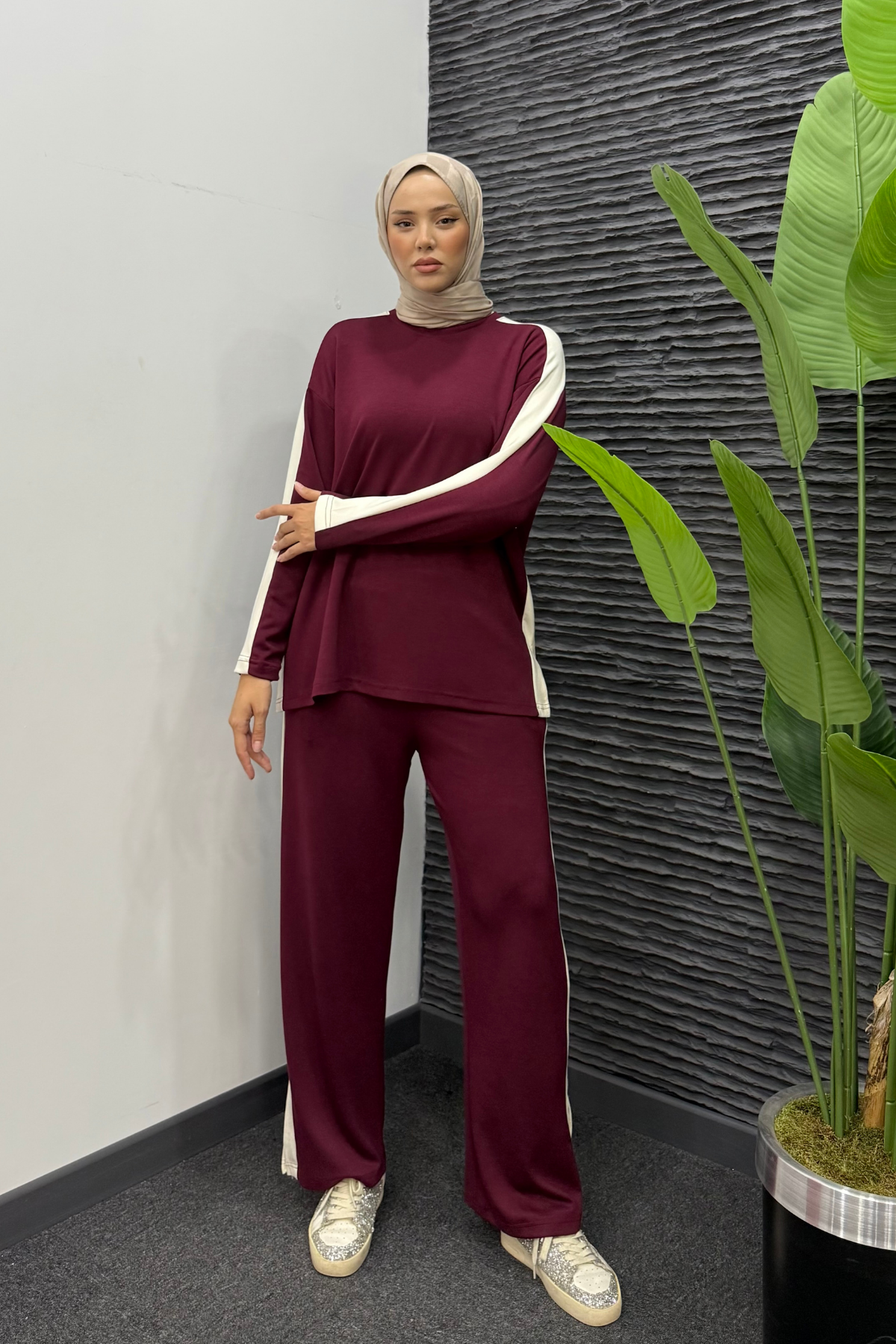 3000 ŞERİT DETAYLI YIRTMAÇLI TAKIM-BORDO