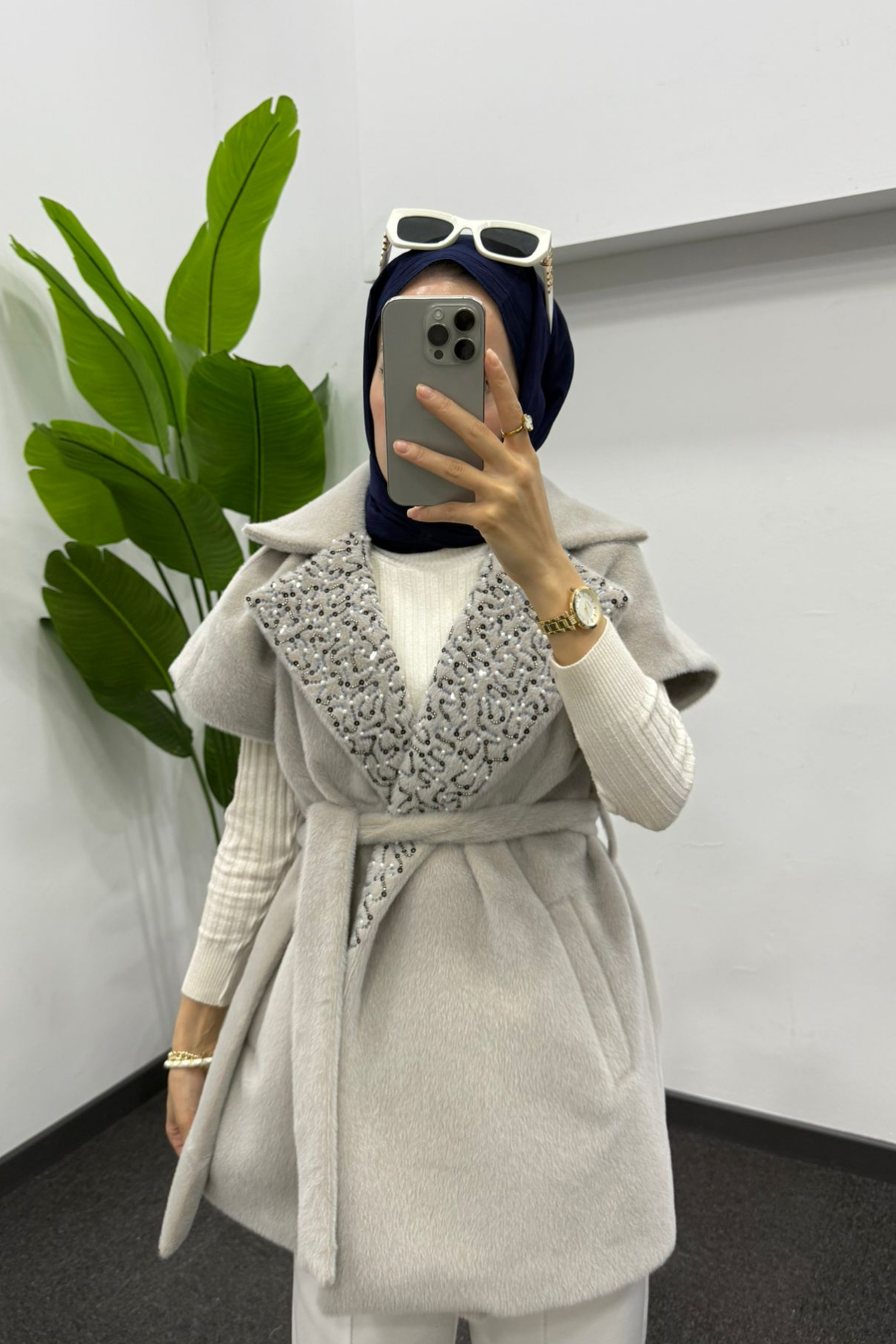 51220-NAKIŞ DETAYLI YELEK-ACIK GRİ (51220)