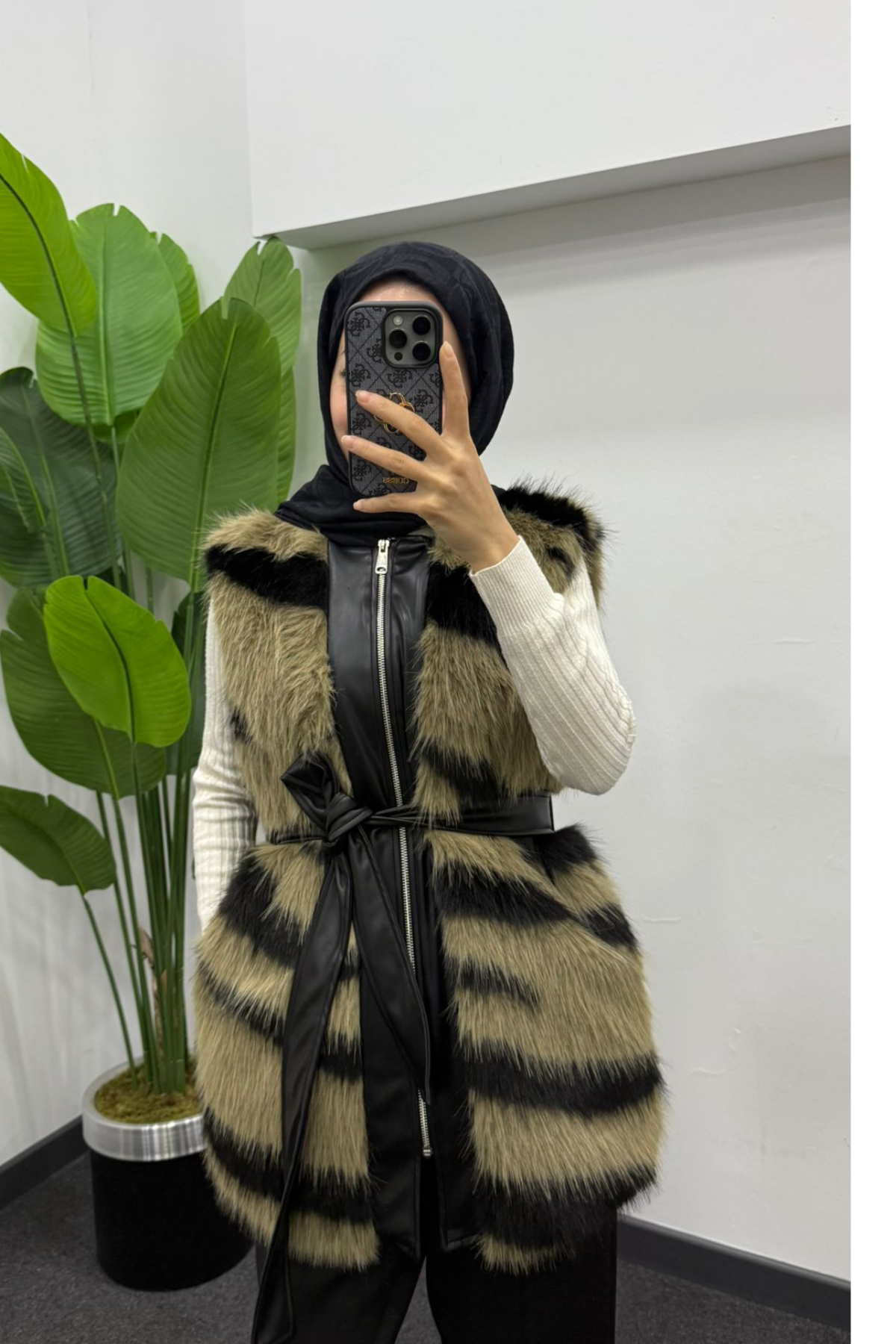 512342-zebra desen kürk yelek. siyah kahverengi (51242)