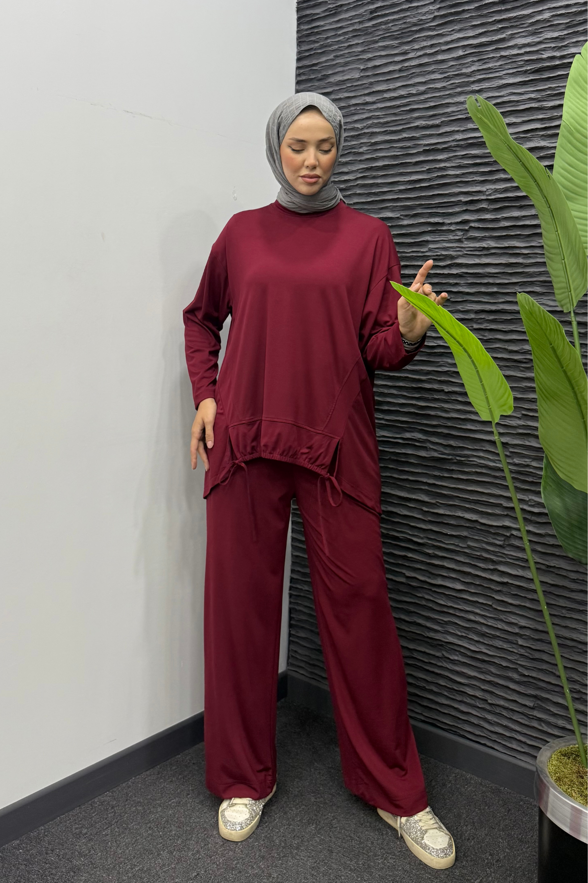 5239 TUNİK ASİMETRİK BOL PAÇA TAKIM-BORDO
