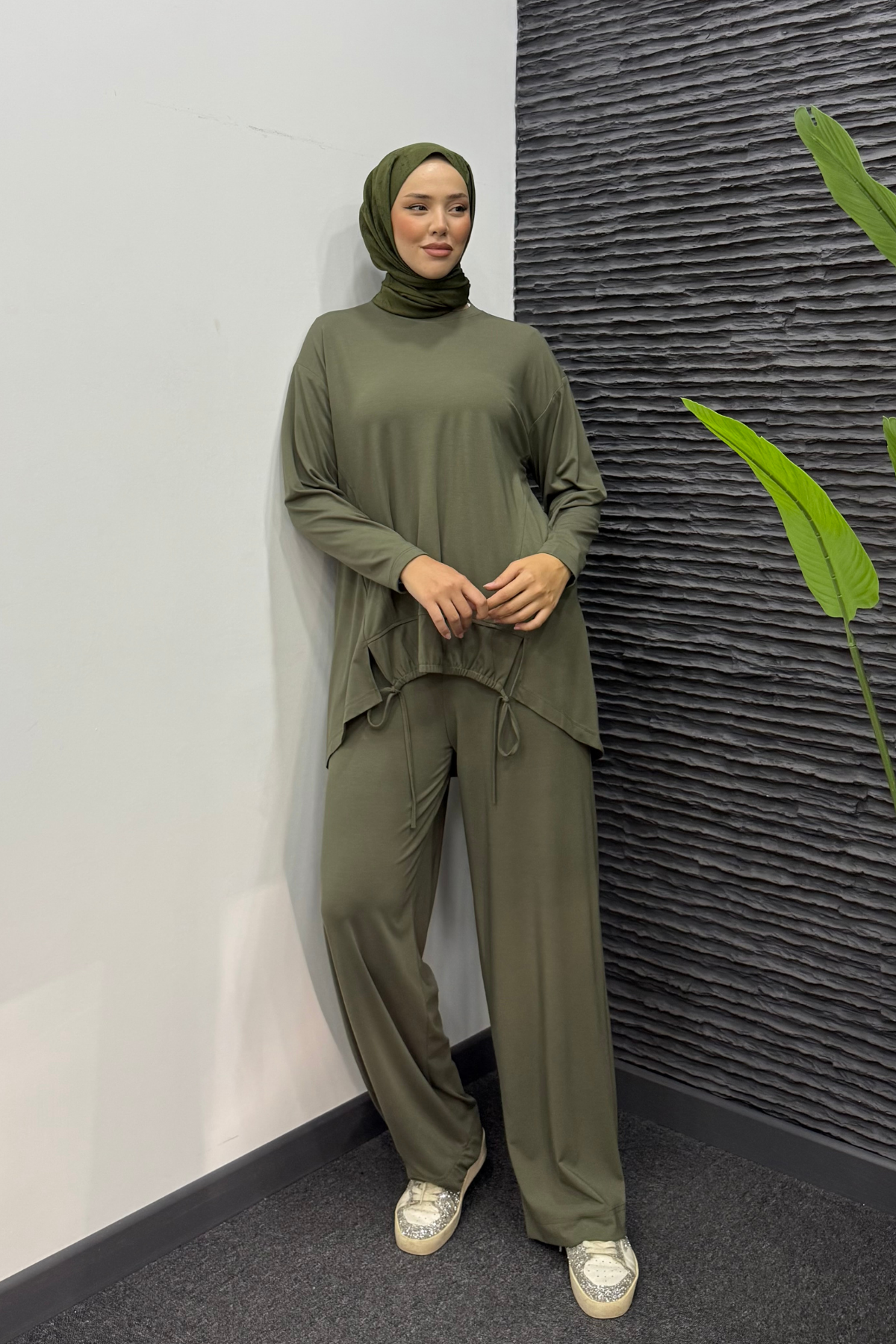5239 TUNİK ASİMETRİK BOL PAÇA TAKIM-HAKİ (5239)
