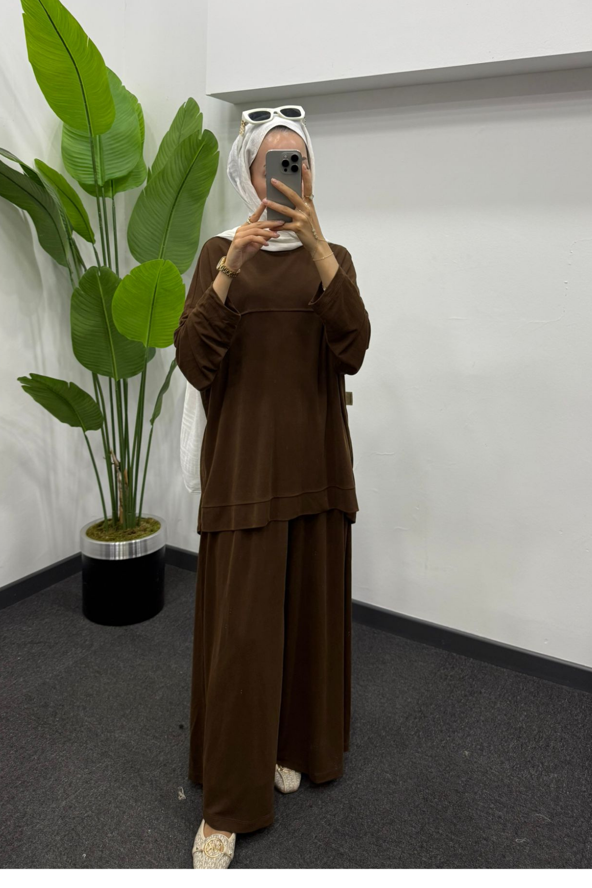 7151-PANTOLONLU TAKIM-KAHVERENGİ (7151)