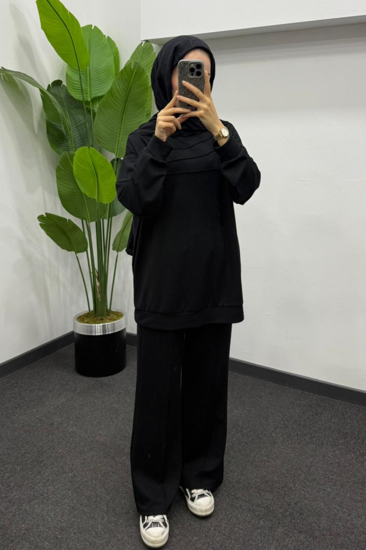 7154-pantolonlu takım -siyah (7154)