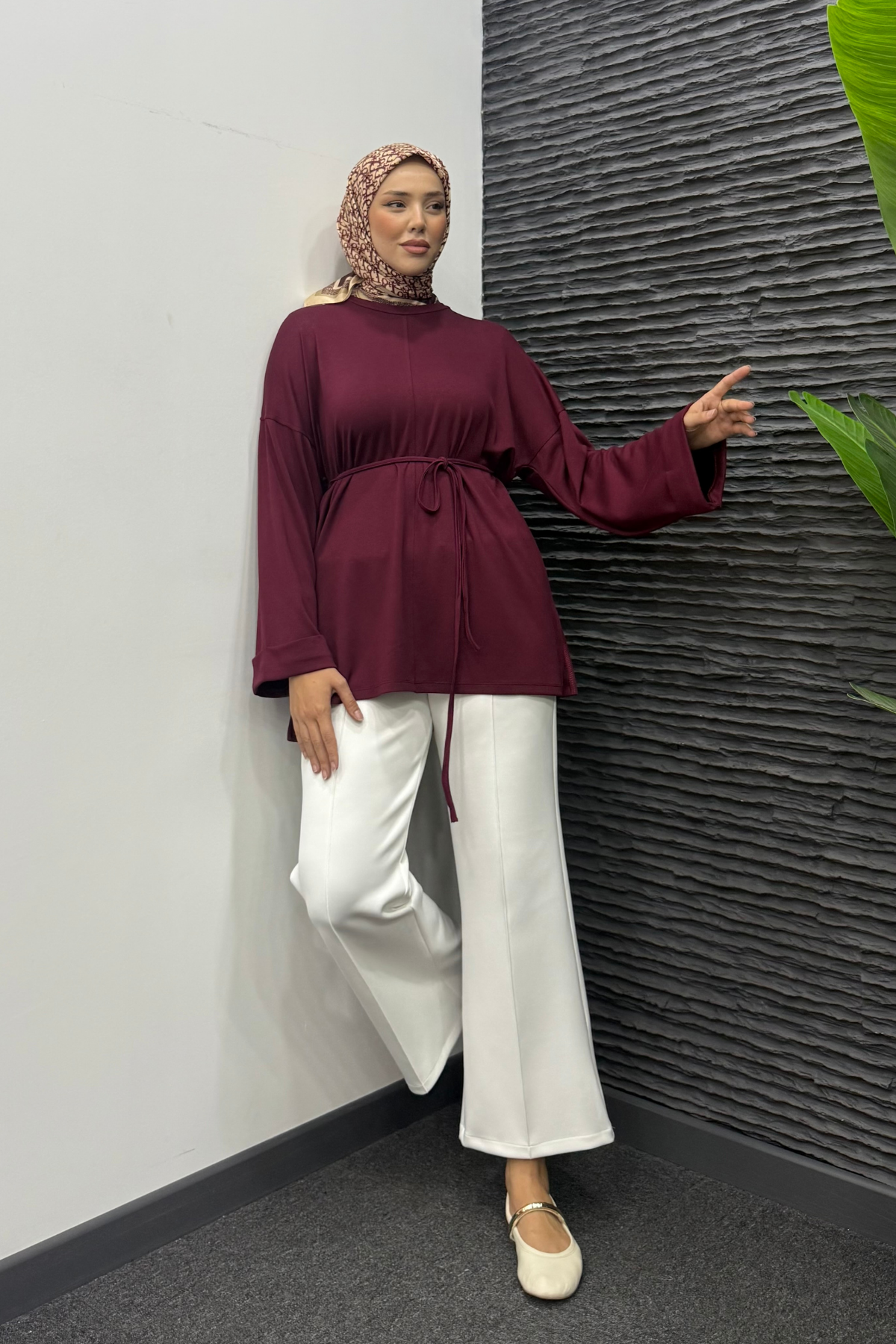 8896 YIRTMAÇ DETAYLI BAĞCIKLI SWEAT-BORDO (8896 )